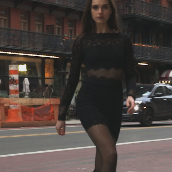 Elevate your evening wardrobe with the Cheval Lace L/S Mini, a refined blend of intricate Baroque-inspired Victorian lace and delicate scalloped mesh trim. This luxurious stretch lace dress captures the essence of sophisticated nights out, be it in Manhattan or Paris, making it the perfect choice for cocktail events or upscale gatherings. Its elegant design combines timeless craftsmanship with modern allure, delivering a look that is both captivating and effortlessly chic.