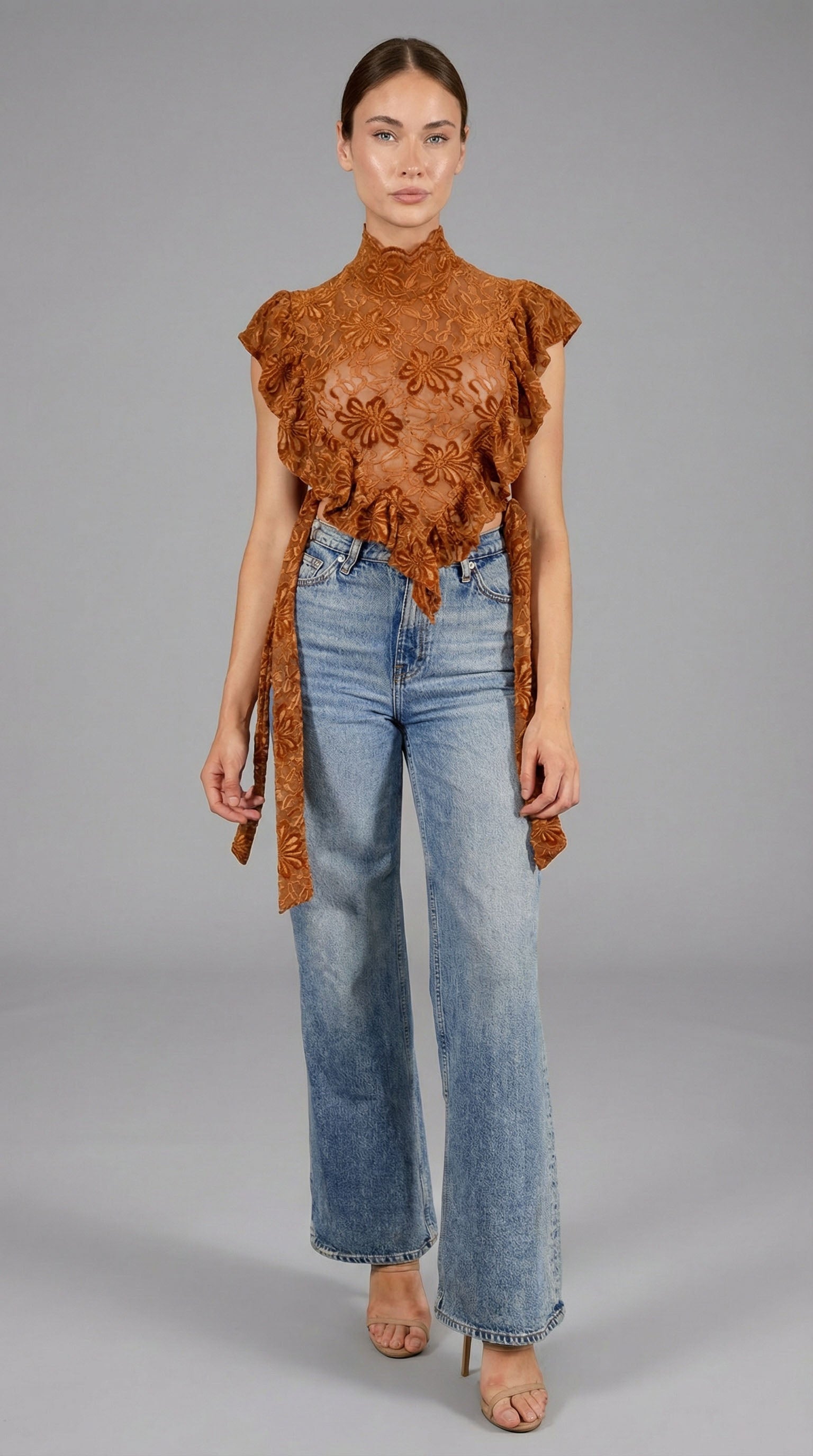 The Fleur Lace Apron Blouse combines elegance with everyday comfort. Featuring delicate lace crafted in Paris, this piece showcases a built-in supportive bra with elastic backing for a secure fit. Easy pull-on design with button closures and adjustable tie sides lets you customize your look. Pair it with jeans for casual sophistication or match it with our lace palazzo pants for a coordinated, head-to-toe ensemble. Soft, durable, and stretchy—designed for effortless style from day to night.