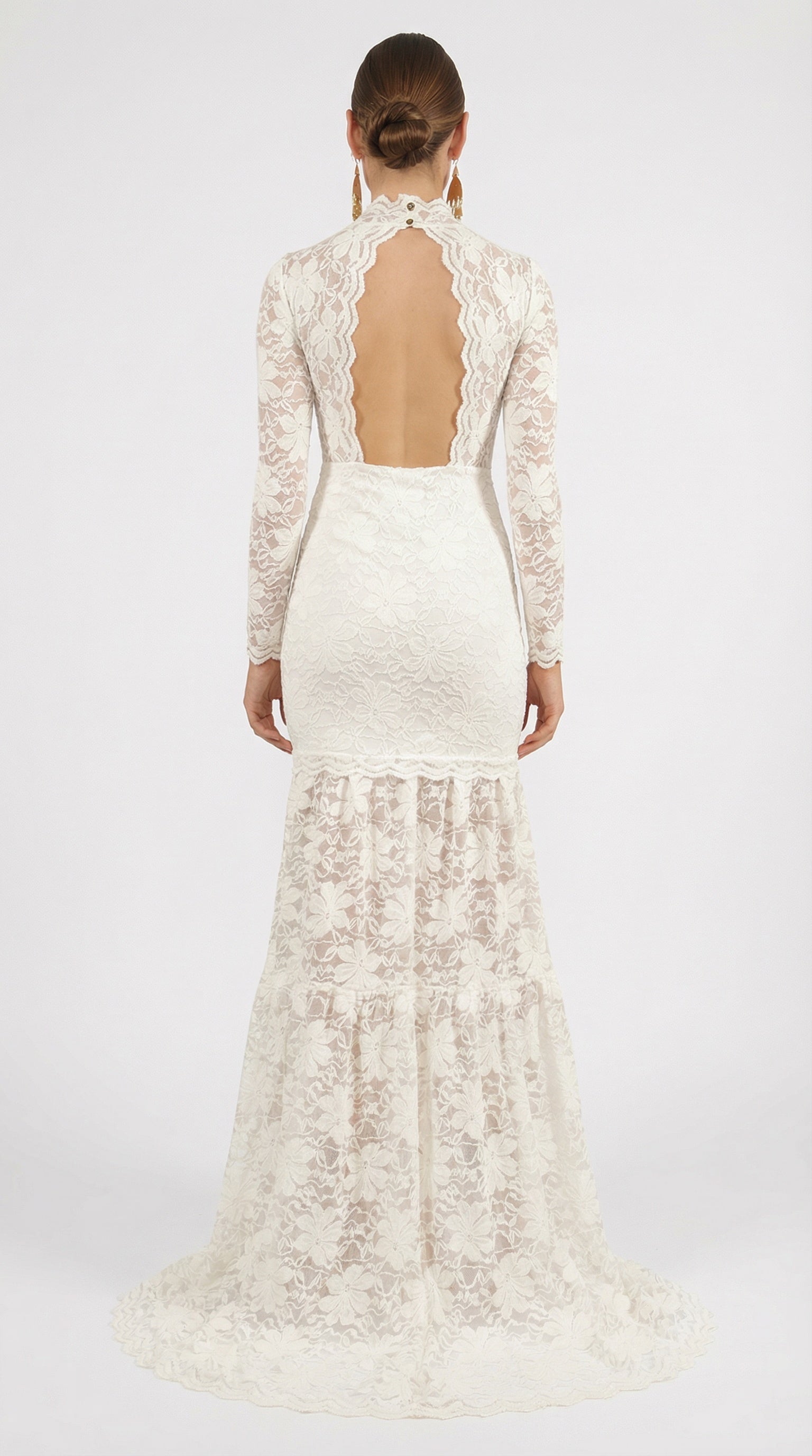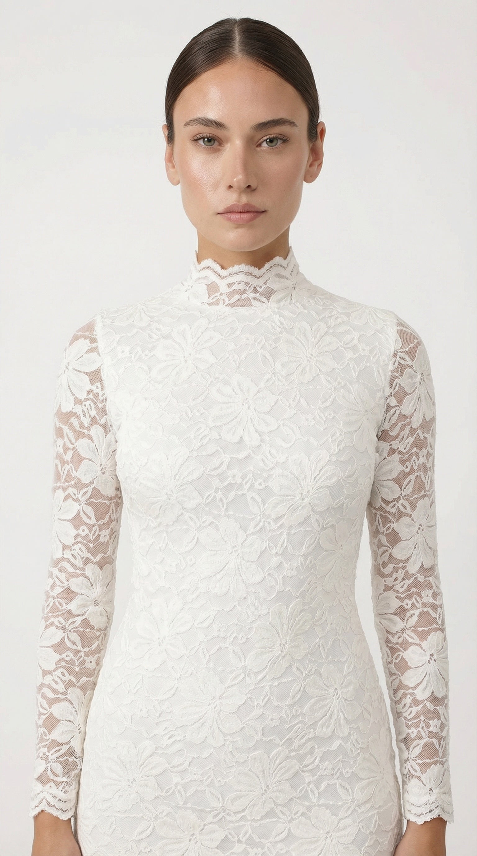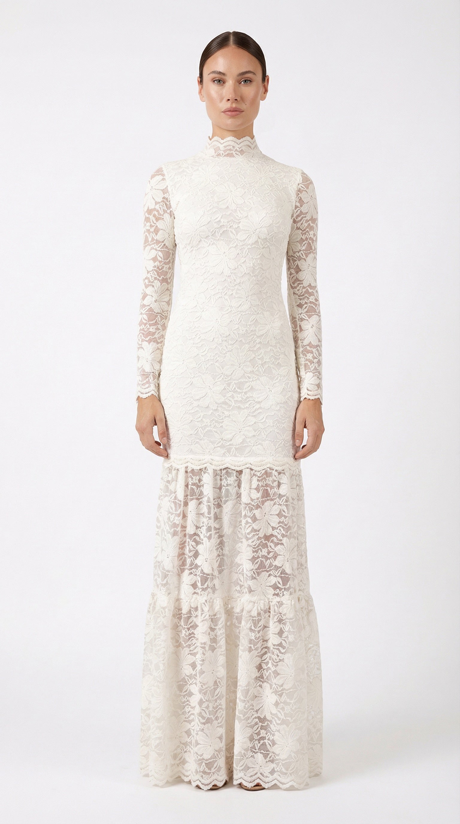 Le Fleur Lace Maxi is an elegant bridal gown that captures timeless Parisian sophistication. Crafted with delicate scallop lace detailing, this maxi dress offers a refined silhouette perfect for your wedding day or special occasions. The stretch fabric ensures comfort and graceful movement, while the intricate lace work adds an undeniably chic, romantic touch.